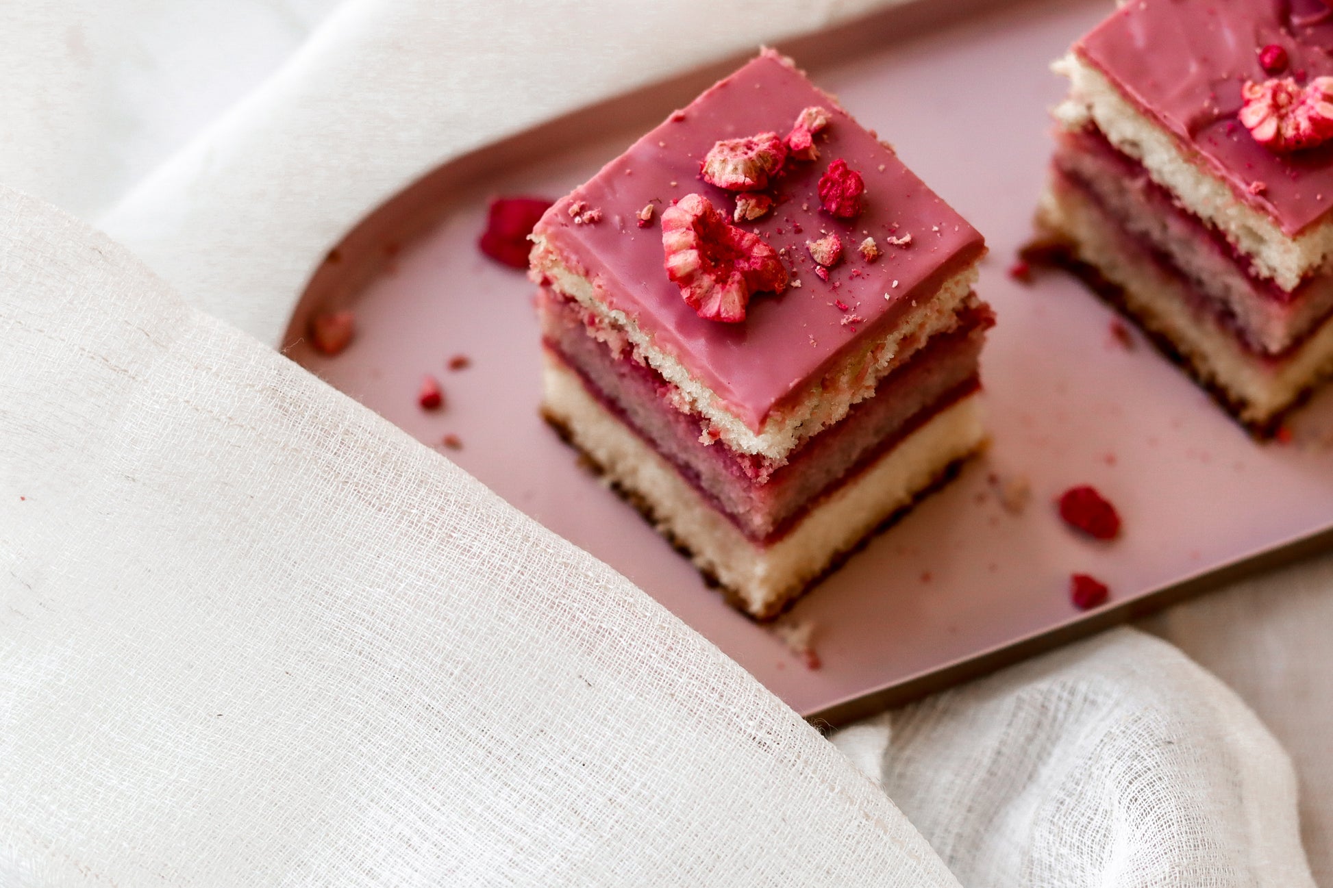 Vláčny punčový rez, ktorý obsahuje malinovú zložku.